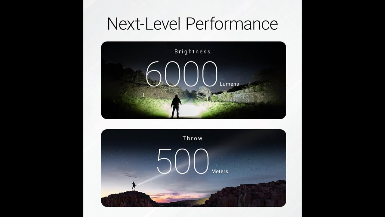 - Blazing 6000 Lumens & 546 Yard Throw – Powered by the new M515S Array LED, the EX7 delivers ultra-bright, uniform illumination for search & rescue, outdoor exploration, and tactical use.