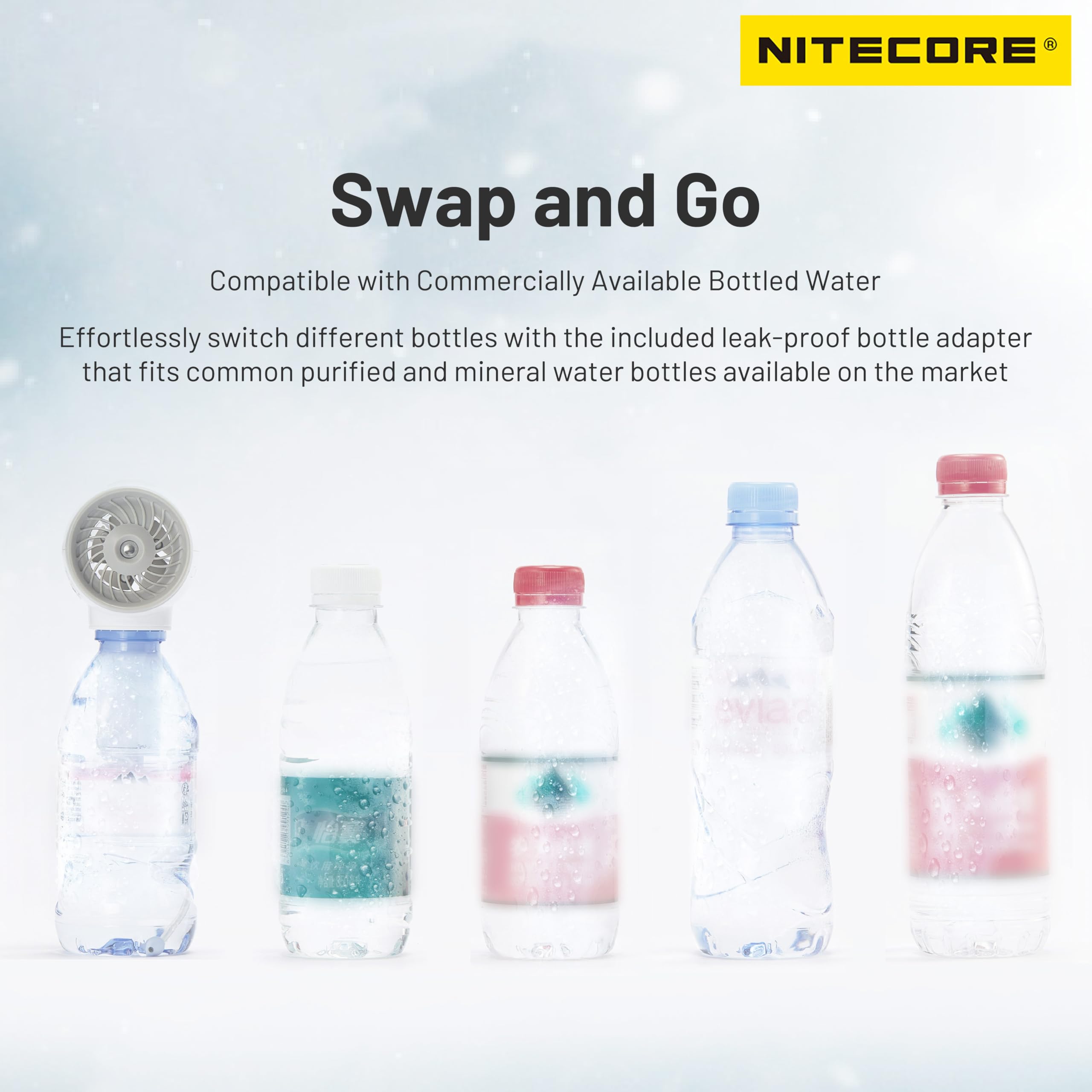 - Large Battery + Swappable Bottles: With a 4000mAh large battery and the option to attach a large capacity iced water bottle, you can enjoy up to 12.5 hours of battery life and 6.8 hours of misting. Just swap the bottles and stay cool all-day long.